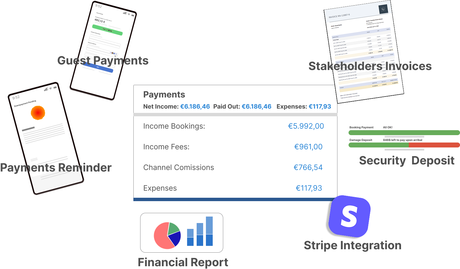 Collect security deposits via pre-authorization (hold funds) or charge. Automatic release after checkout or deduct damages. Transparent for guests.